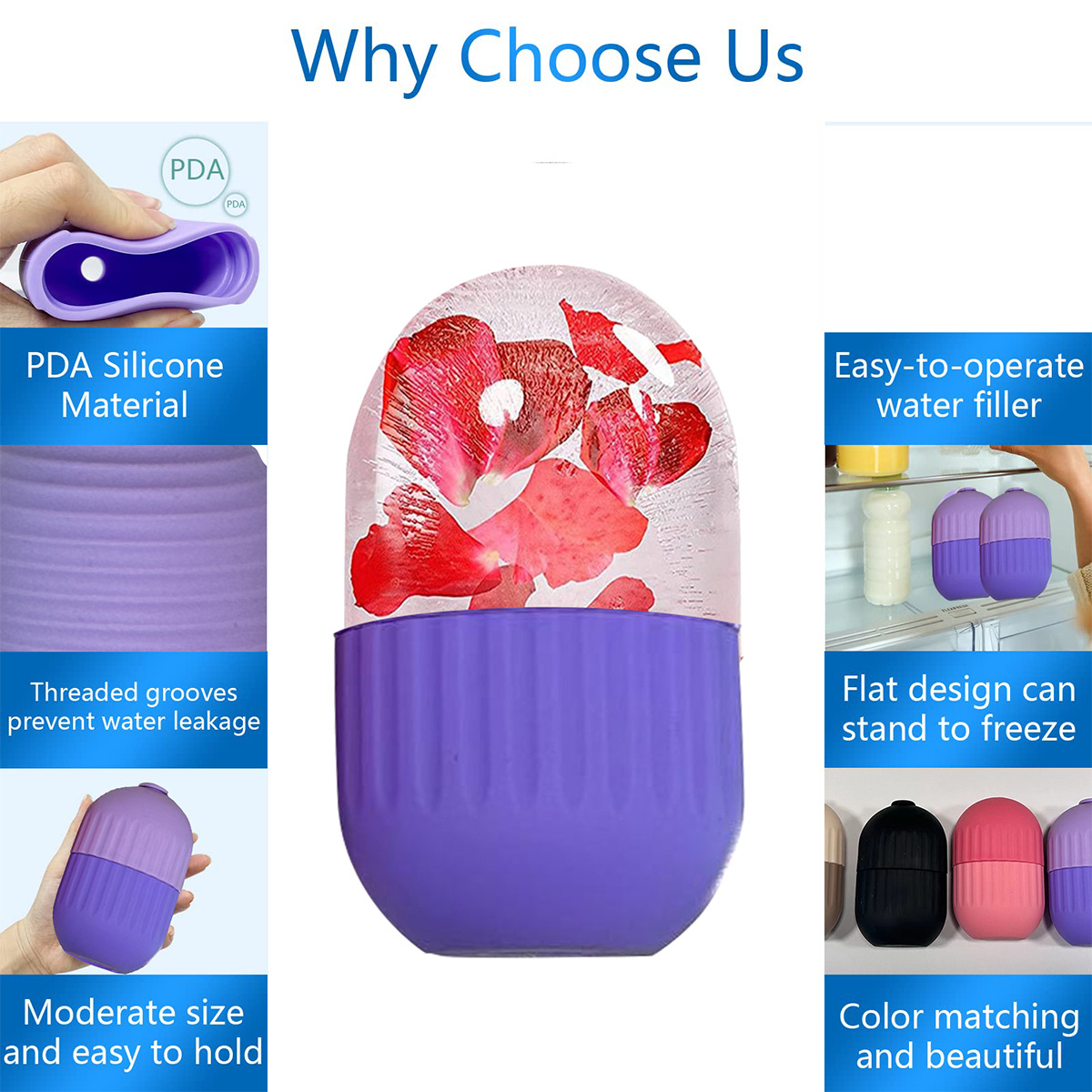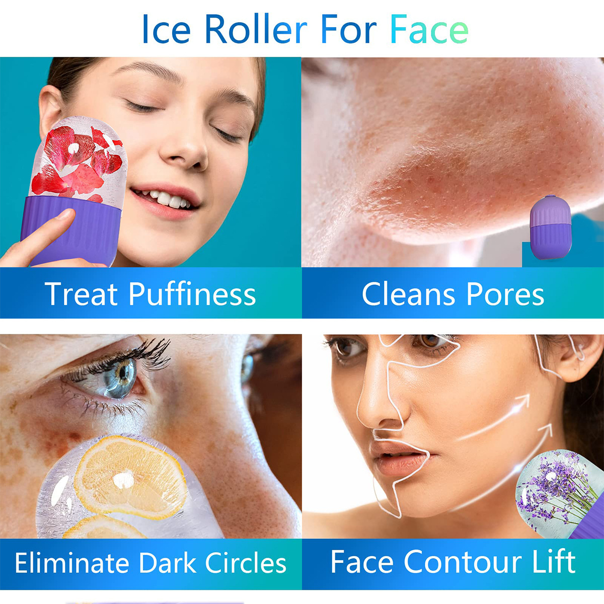 YOUBLOOM Beauty Face Ice Holder Face Ice Cube Mold Massager Remove puffiness Silicone Facial Massage Ice Roller