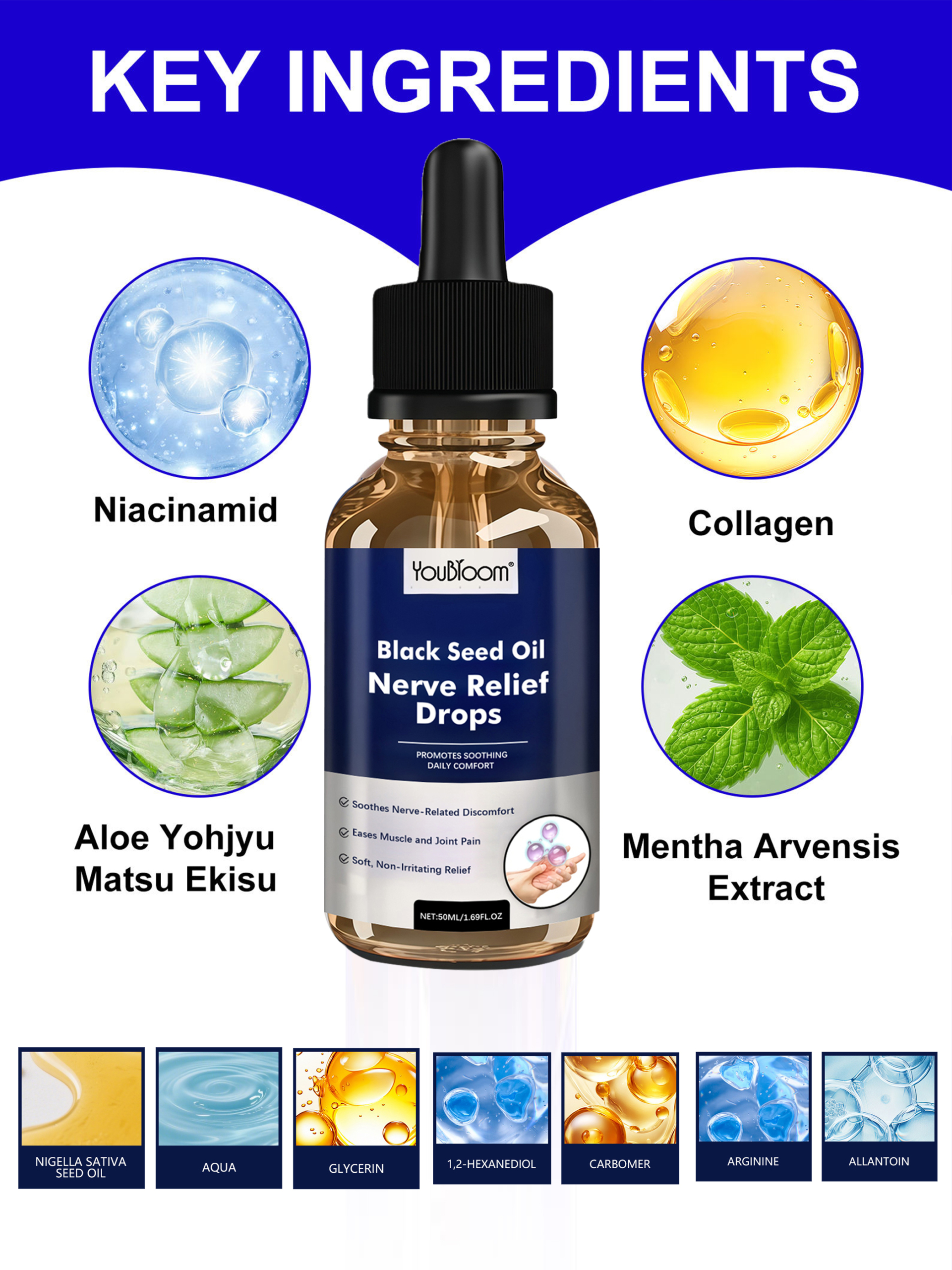 YOUBLOOM Nerve Relief Drops Black Seed Oil Fitting Daily Oral Consumption Habits Nerve Care Liquid Drops