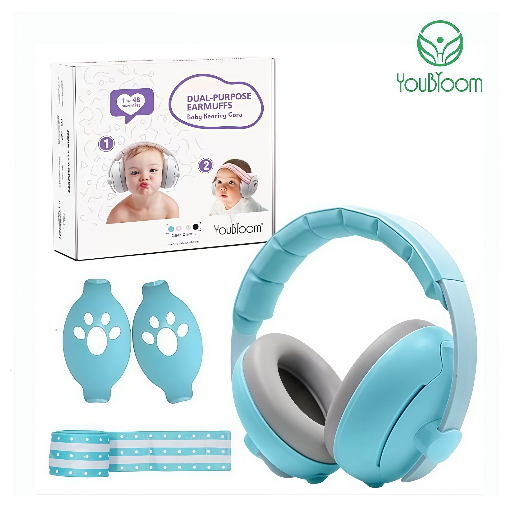 YOUBLOOM 2 in1 Aircraft decompression Noise Reduction Comfortable Headphones Improves Sleep Baby Ear Defenders Earmuffs Kids Hearing Protection