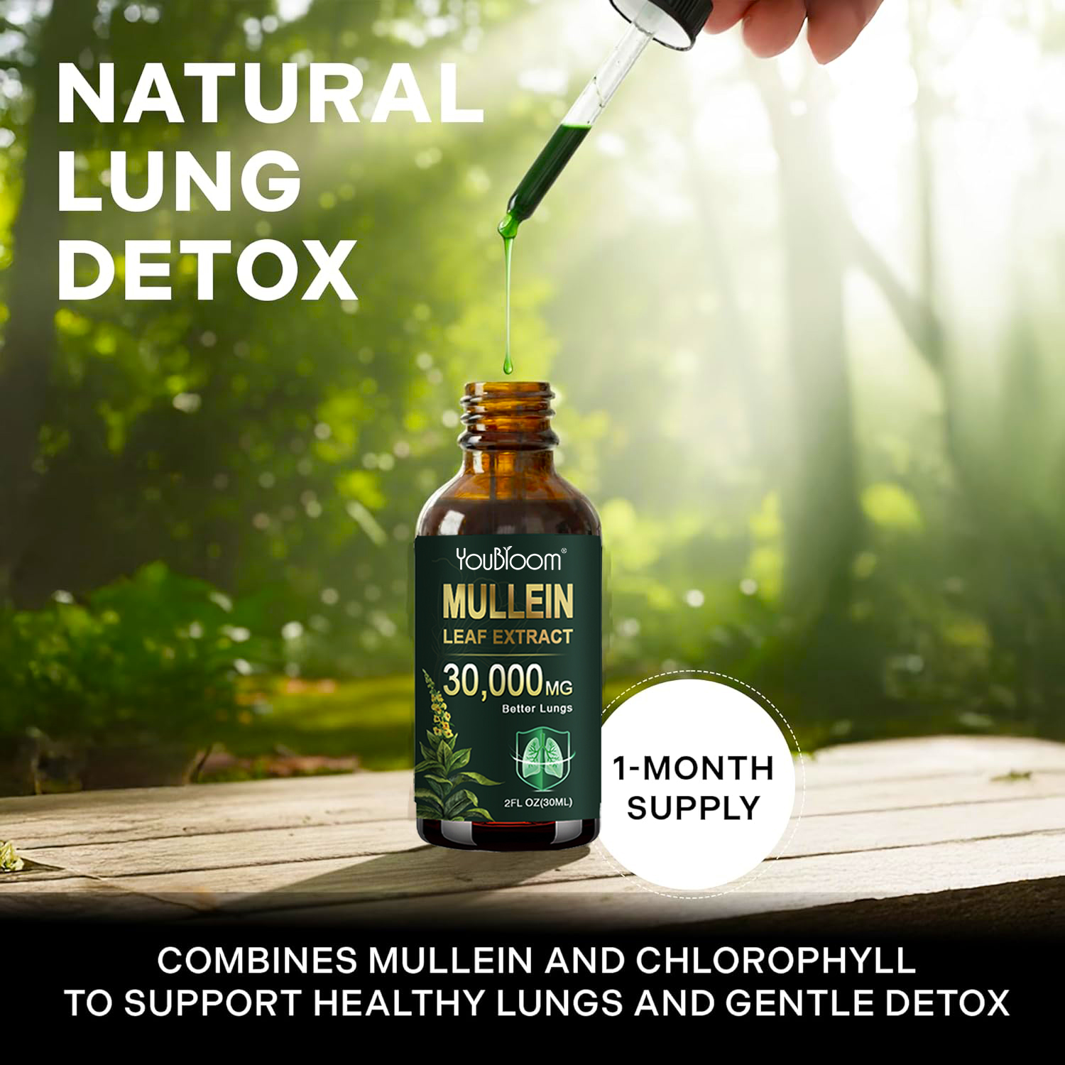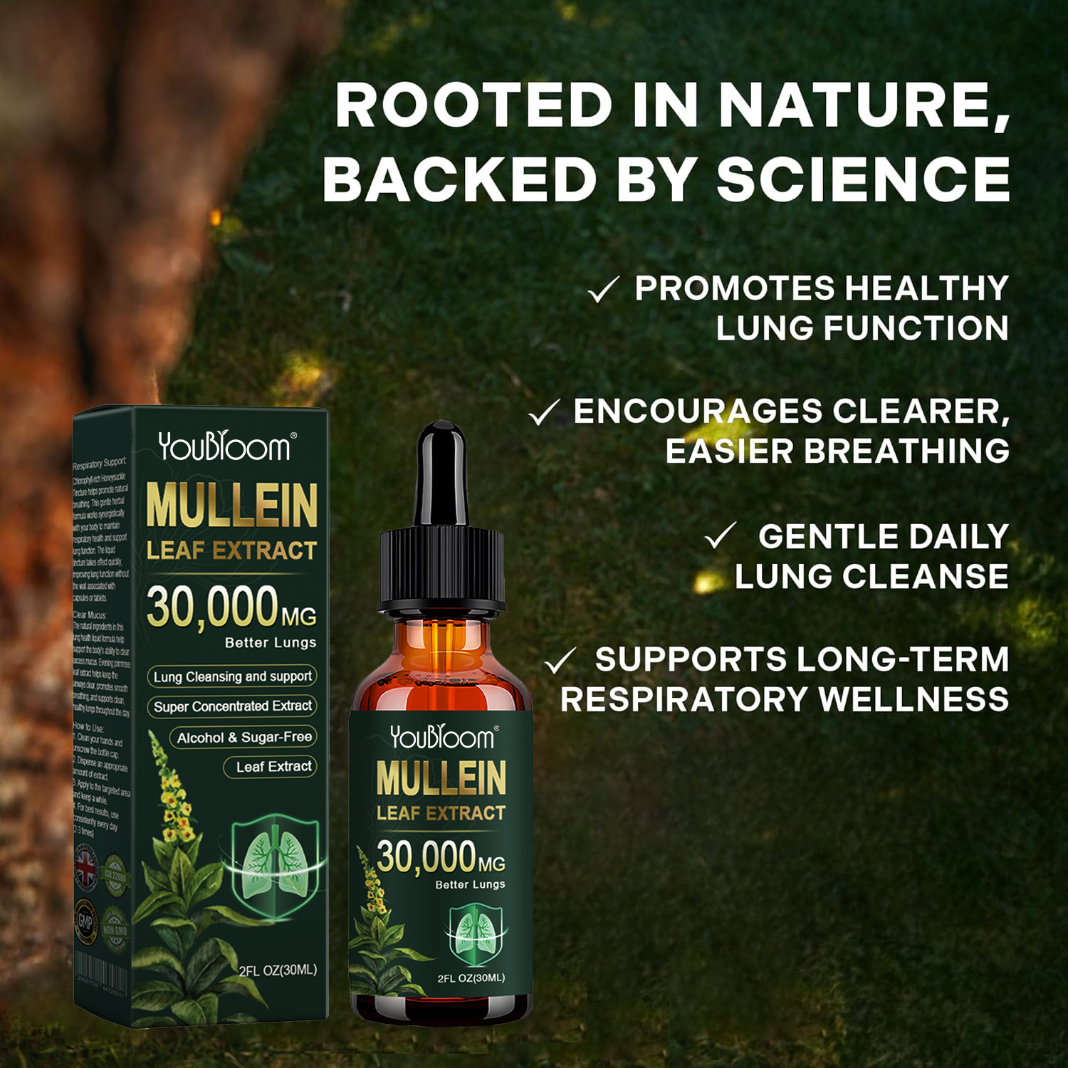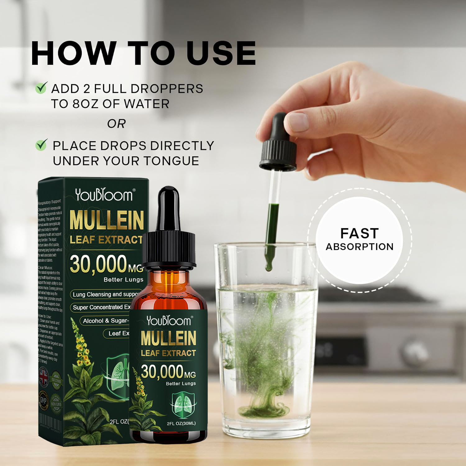 YOUBLOOM Organic Liquid Herbal Mullein Leaf Extract Supplement Mullein Drops for Lungs Health Support