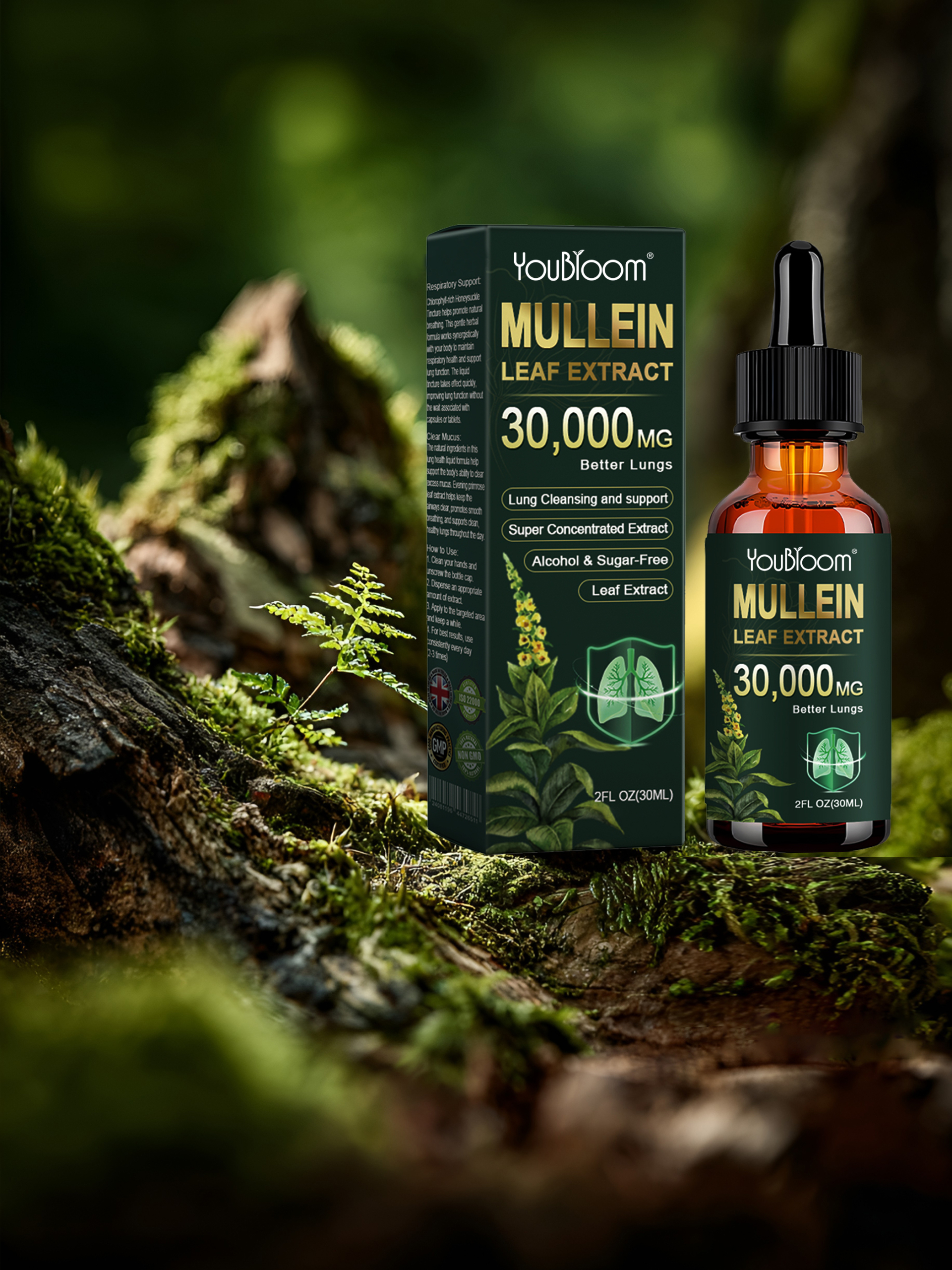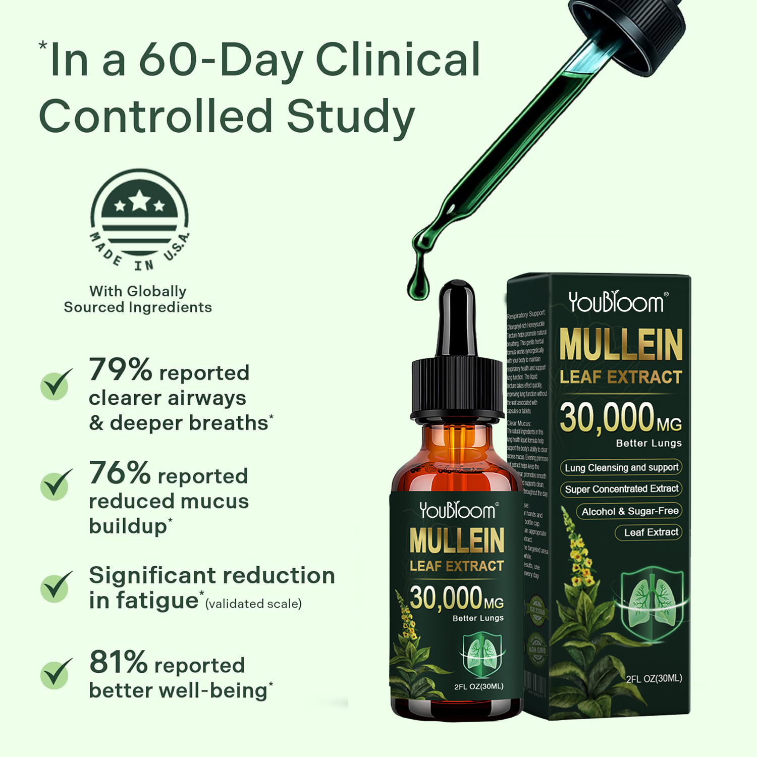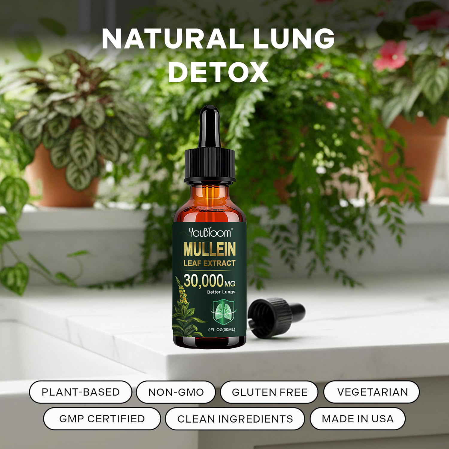YOUBLOOM Organic Liquid Herbal Mullein Leaf Extract Supplement Mullein Drops for Lungs Health Support