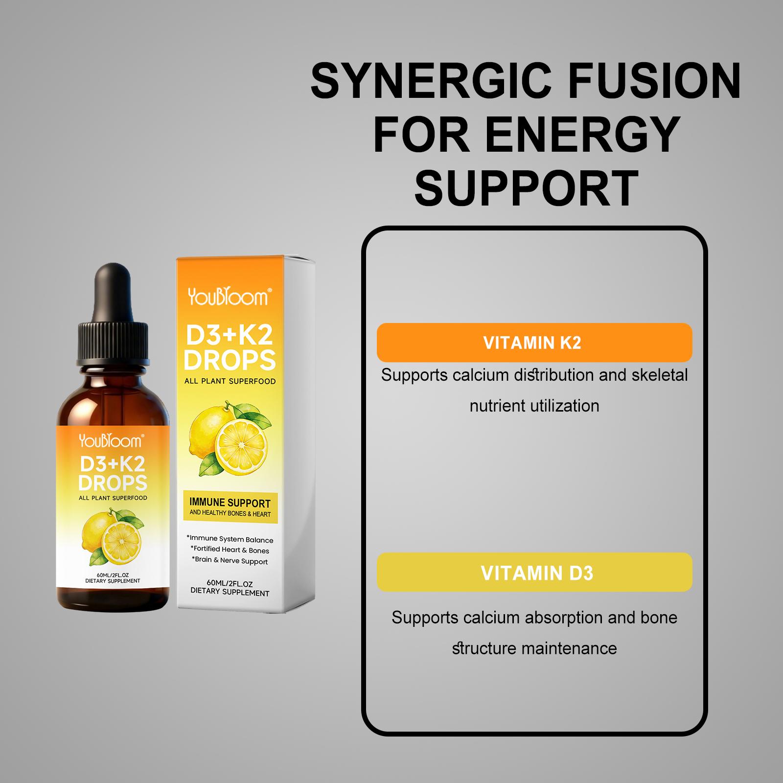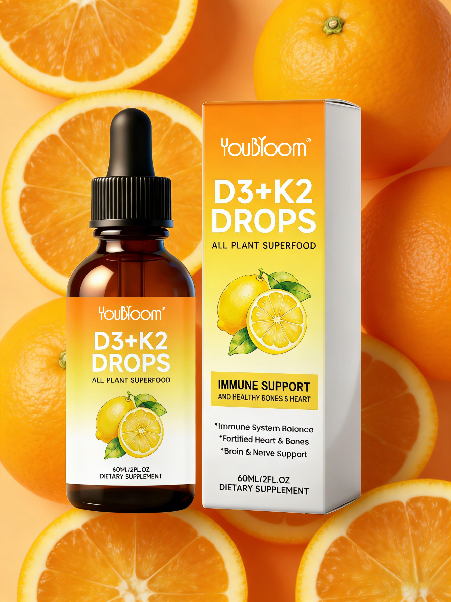 YouBloom Vitamin D3 K2 Liquid Drops – Liposomal 1000 IU D3 & 200 mcg K2 MK-7 – High Absorption, Immune, Bone & Heart Support, Non-GMO, Lemon Flavor