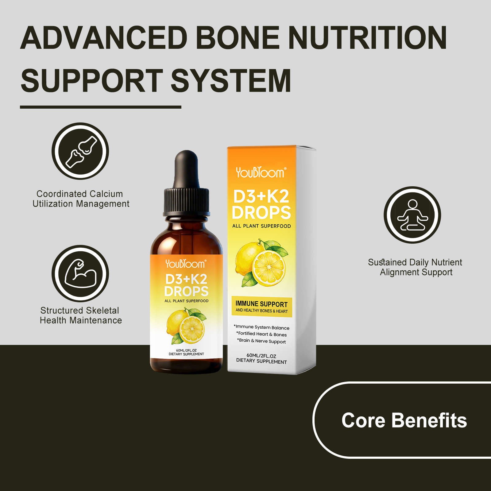 YouBloom Vitamin D3 K2 Liquid Drops – Liposomal 1000 IU D3 & 200 mcg K2 MK-7 – High Absorption, Immune, Bone & Heart Support, Non-GMO, Lemon Flavor